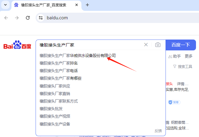 通過搜索引擎(如百度、搜狗、360、bing、國外谷歌等,天眼查、企查查等)輸入關(guān)鍵詞“橡膠接頭生產(chǎn)廠家”,可以找到許多相關(guān)的生產(chǎn)廠家。例如,搜索結(jié)果中提到了一些知名的橡膠接頭生產(chǎn)廠家,如下圖展示的結(jié)果:橡膠接頭生產(chǎn)廠家華威供水設(shè)備股份有限公司。